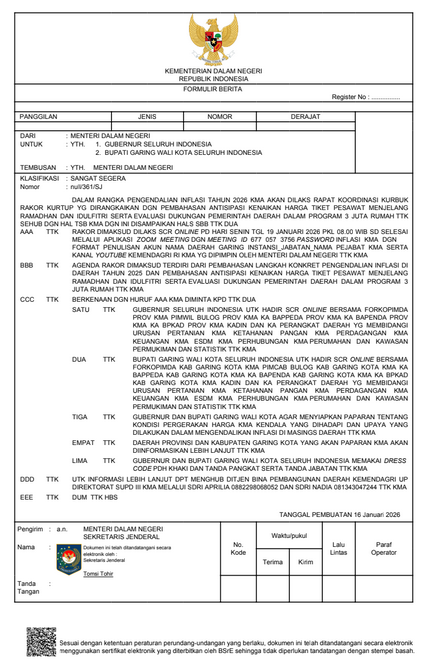 RAPAT KOORDINASI PENGENDALIAN INFLASI