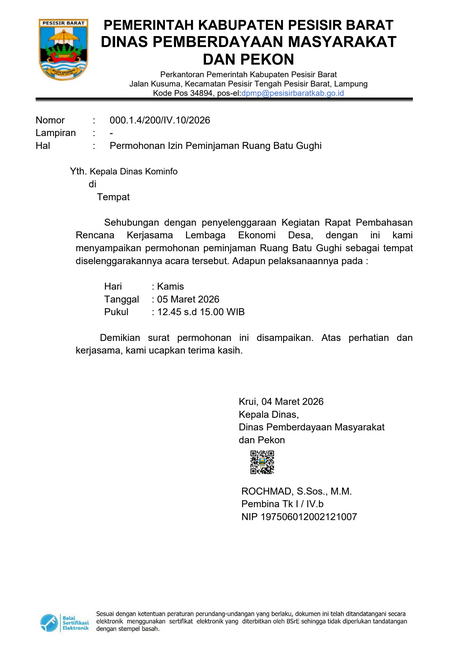Jika ruang rapat sudah dibooking namun terdapat agenda yang melibatkan pimpinan tinggi secara langsung, kami berhak membatalkan pemesanan tersebut. Penggunaan ruangan diprioritaskan untuk perangkat daerah di lingkungan Pemerintah Kabupaten Pesisir Barat. Stakeholder luar dapat menggunakan ruangan atas permohonan dan disetujui oleh pimpinan kami. Untuk pertanyaan lebih lanjut atau bantuan dalam proses booking, jangan ragu untuk Kontak ALiKA.