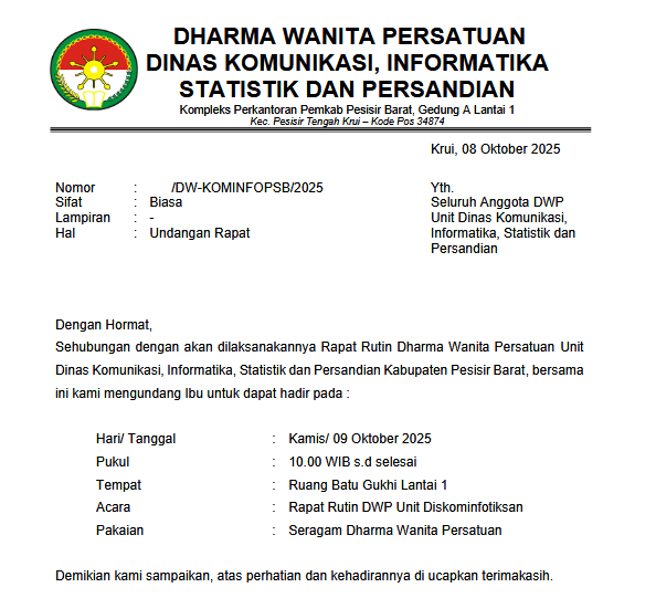 Rapat Rutin Dharma Wanita Persatuan Unit Dinas Komunikasi, Informatika, Statistik dan Persandian Kabupaten Pesisir Barat