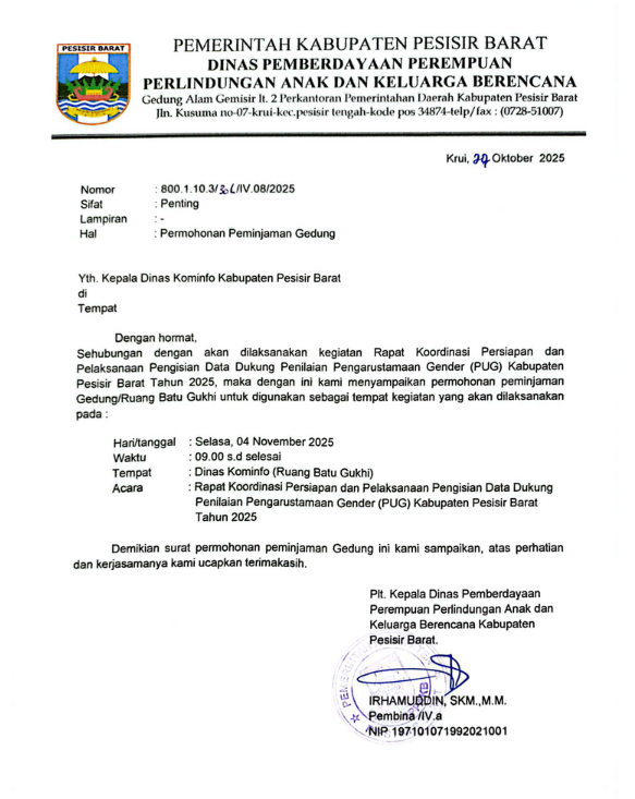 Kegiatan Rapat Koordinasi Persiapan dan Pelaksanaan Pengisian data Dukung Penilaian Pengarustamaan Gender ( PUG ) Kabupaten Pesisir Barat Tahun 2025