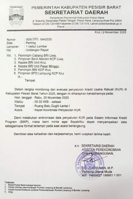 RAPAT KOORDINASI PENYALURAN KUR KREDIT USAHA RAKYAT