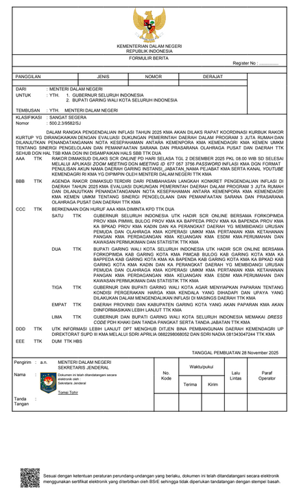 RAPAT KOORDINASI PENGENDALIAN INFLASI