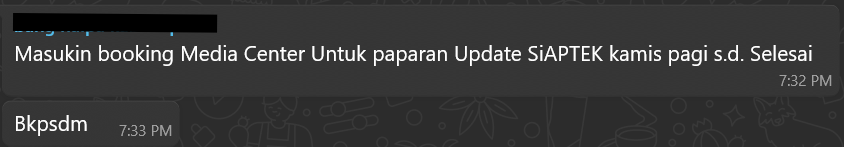 Jika ruang rapat sudah dibooking namun terdapat agenda yang melibatkan pimpinan tinggi secara langsung, kami berhak membatalkan pemesanan tersebut. Penggunaan ruangan diprioritaskan untuk perangkat daerah di lingkungan Pemerintah Kabupaten Pesisir Barat. Stakeholder luar dapat menggunakan ruangan atas permohonan dan disetujui oleh pimpinan kami. Untuk pertanyaan lebih lanjut atau bantuan dalam proses booking, jangan ragu untuk Kontak ALiKA.