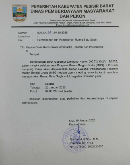 Jika ruang rapat sudah dibooking namun terdapat agenda yang melibatkan pimpinan tinggi secara langsung, kami berhak membatalkan pemesanan tersebut. Penggunaan ruangan diprioritaskan untuk perangkat daerah di lingkungan Pemerintah Kabupaten Pesisir Barat. Stakeholder luar dapat menggunakan ruangan atas permohonan dan disetujui oleh pimpinan kami. Untuk pertanyaan lebih lanjut atau bantuan dalam proses booking, jangan ragu untuk Kontak ALiKA.